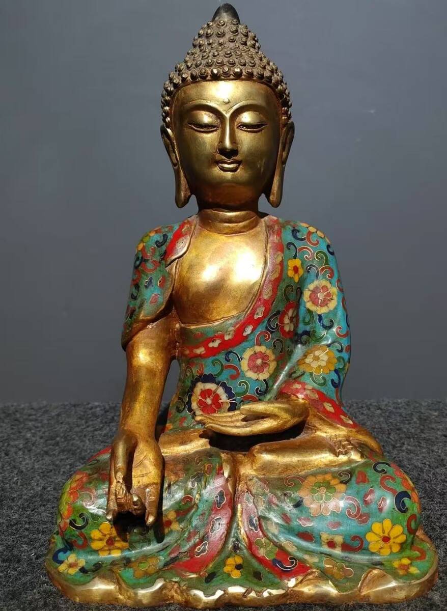 - 仏像 清代 旧蔵 純銅景泰藍【釈迦牟尼仏】一尊 チベット古寺 銅製 唐物 收蔵品 時代物 古美術 古置物 希少珍品 供養品 文房具 仏教6.26