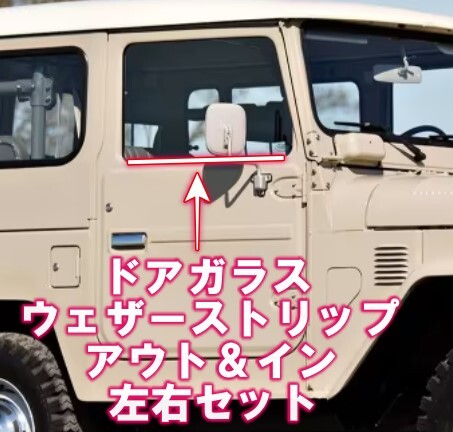 > 【希少 新品】トヨタ ランクル 40 フロント ドア ガラス ウェザーストリップ イン アウト 1台分 窓 開閉 ゴム モール ドアガラス 内側 外側