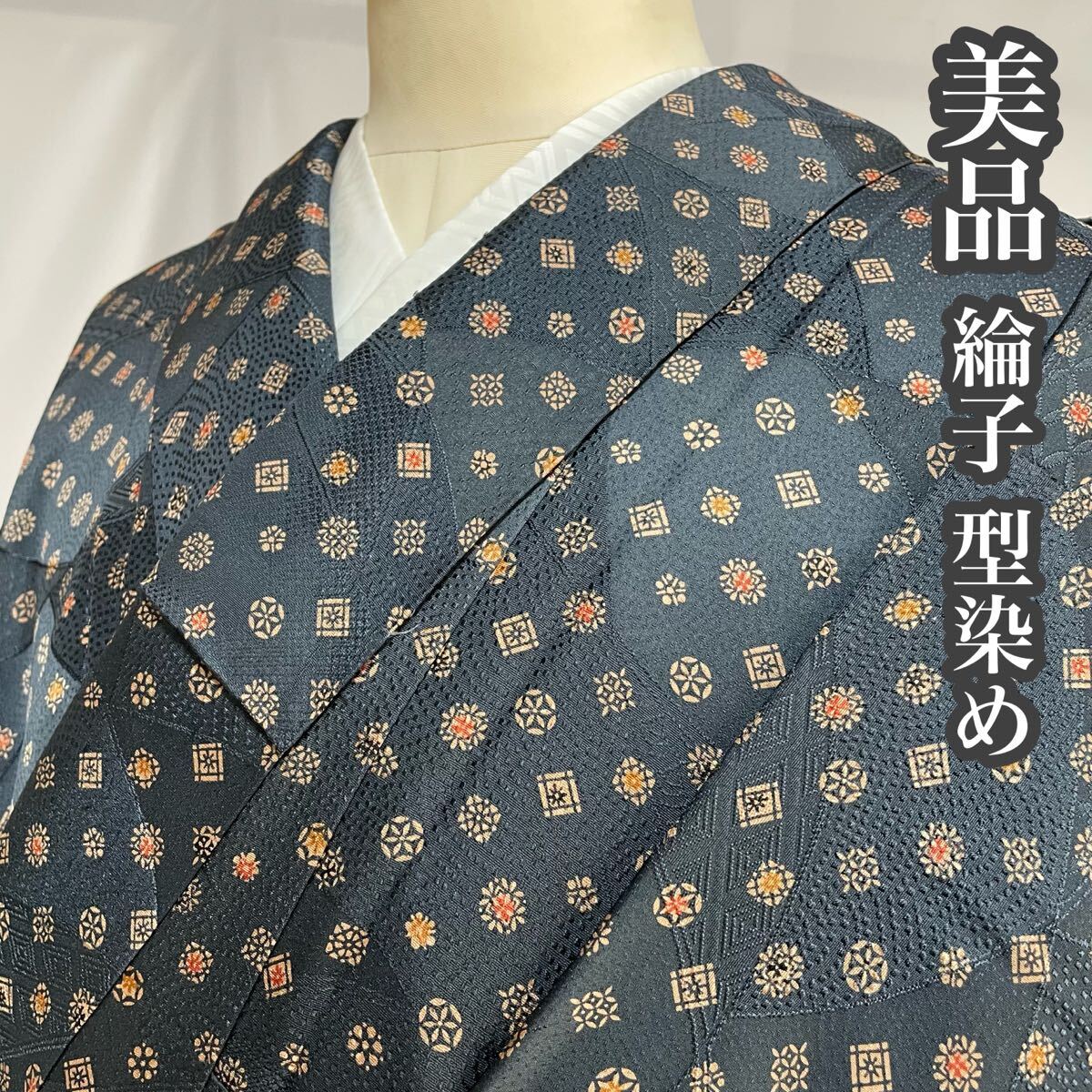 - #H422 美品 綸子 小花文様 型染め 正絹 和装 和服 着物【wellriver】