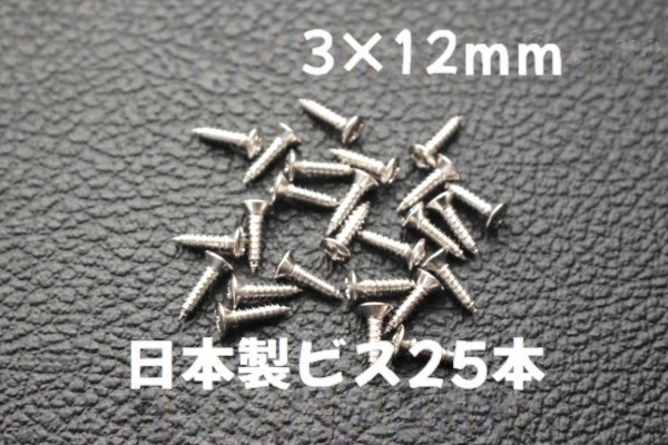 > 25本 日本製 ピックガード バックパネル ビス ギター ベース ネジ 3mmx12mm ニッケル