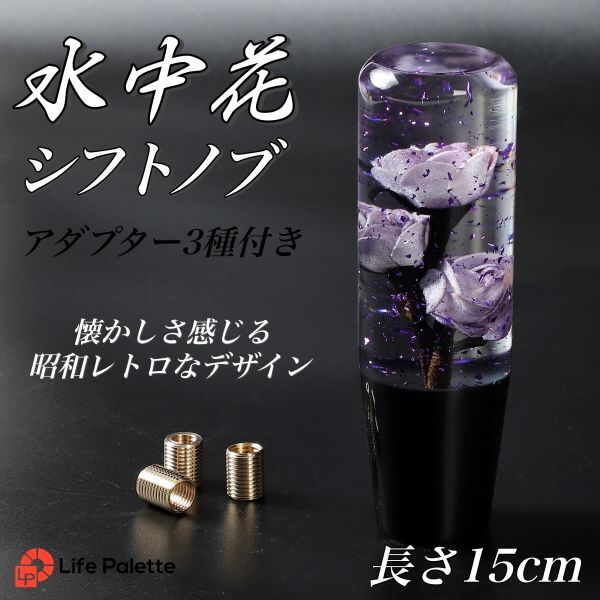 > 水中花シフトノブ 15cm 軽トラ 街道レーサー 高速有鉛 90’sJDM 180SX ドリフト カスタム デコトラ レトロ パープル 紫 トラック ロング