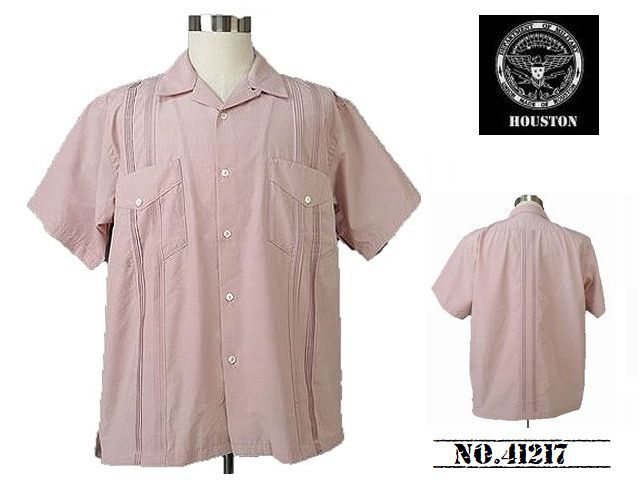 > 【送料無料 42%OFF】HOUSTON ヒューストン TCポプリン CUBA SHIRT / キューバシャツ NO.41217 PINK_Lサイズ