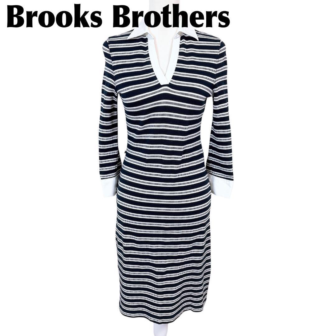 - 美品 ブルックス ブラザーズ 長袖ポロワンピース 襟付き XS ボーダー 紺×白