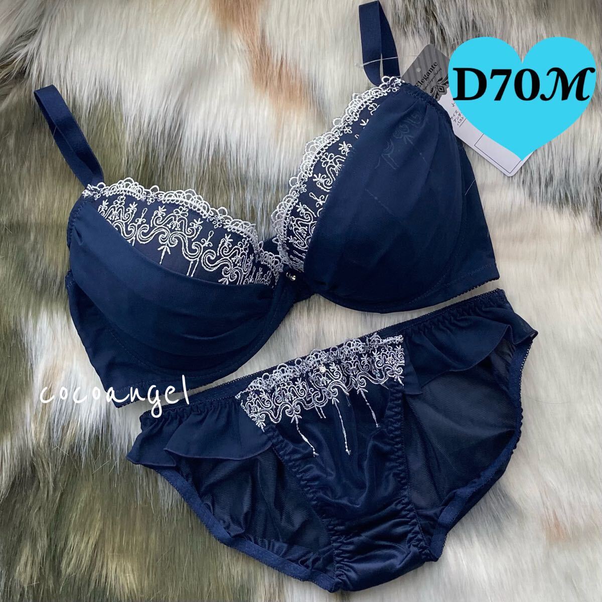 - ラスト【D70/M ネイビー 上下】新品 ブラ&ショーツ ブラジャーショーツ パッド付き 刺しゅう チュール 豪華 かわいいパンティ Dカップ