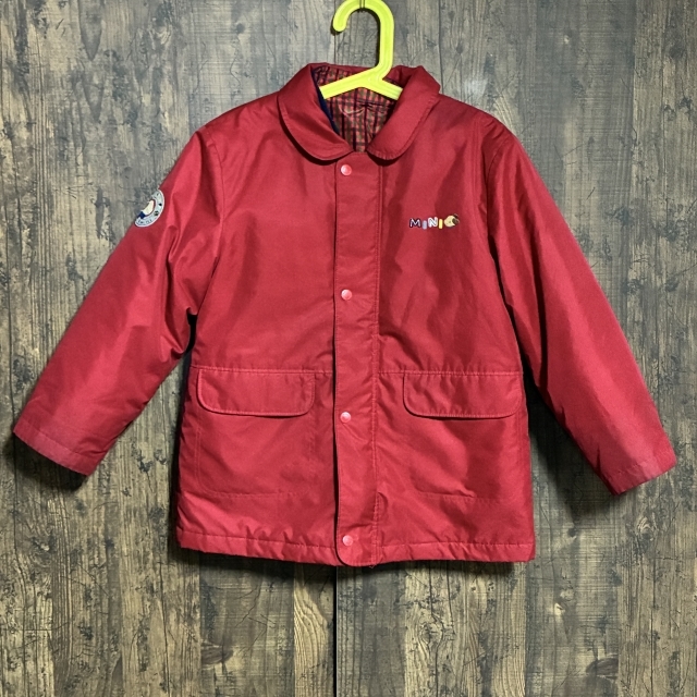 - A359◇familiar | ファミリア ロゴ刺繍 裏地チェック リバーシブルジャンパー レッド キッズ 120サイズ 中古品