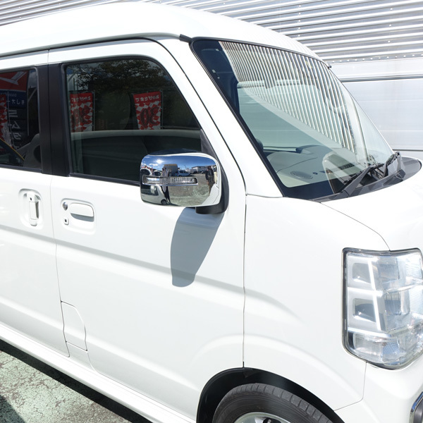 - 商品製造工場紹介動画付スズキ エブリィワゴン DA17W 専用ドアミラーカバー 左右 鏡面メッキ 高級感アップ 貼り付けかんたん装着!