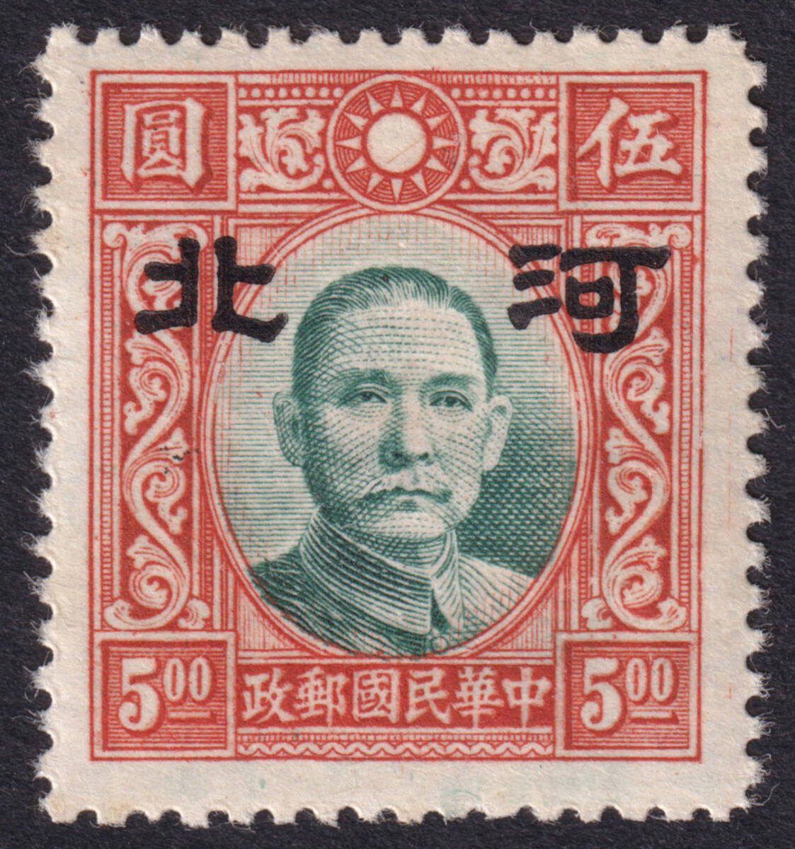 - 中国占領地切手 河北 省名加刷 大字 大東版孫文票 すかしなし 5円 未使用 NH JPS:1C71 z12855