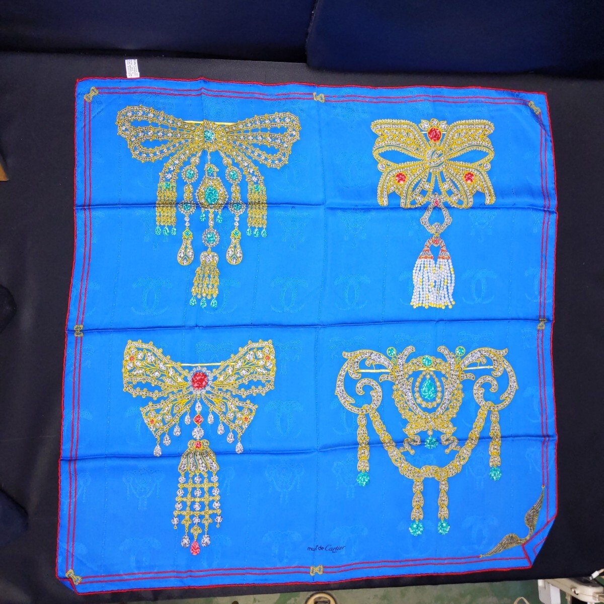 > 612 Cartier カルティエ パンテール シルク100% スカーフ ストール ショール レディース ブルー系