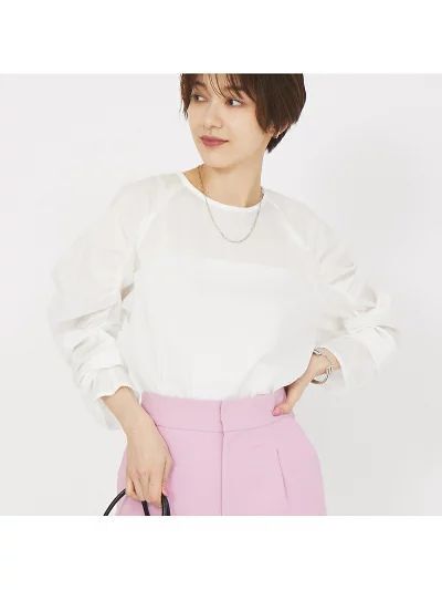 > Rouge vif la cle(ルージュ・ヴィフ ラクレ)オフ白 コットン綿サッカー生地 スリーブギャザーブラウス 20900円 ABAHOUSEアバハウス