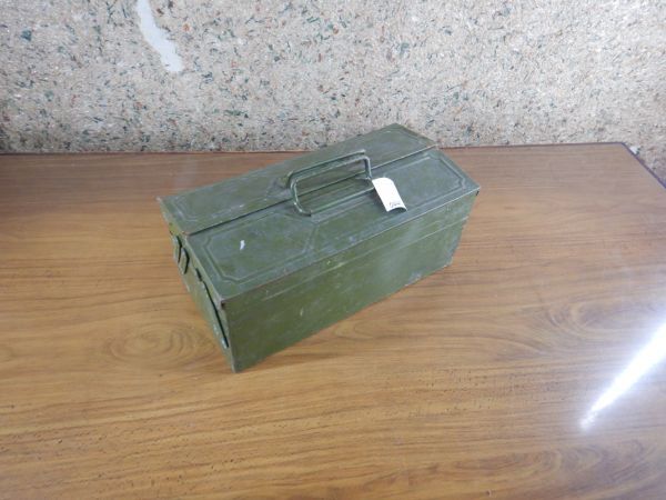 > カーキ色 鉄製工具箱 062801 35.5X18XH15.5CM 道具入れ 大工道具 錆びあり 昭和レトロ 日本製