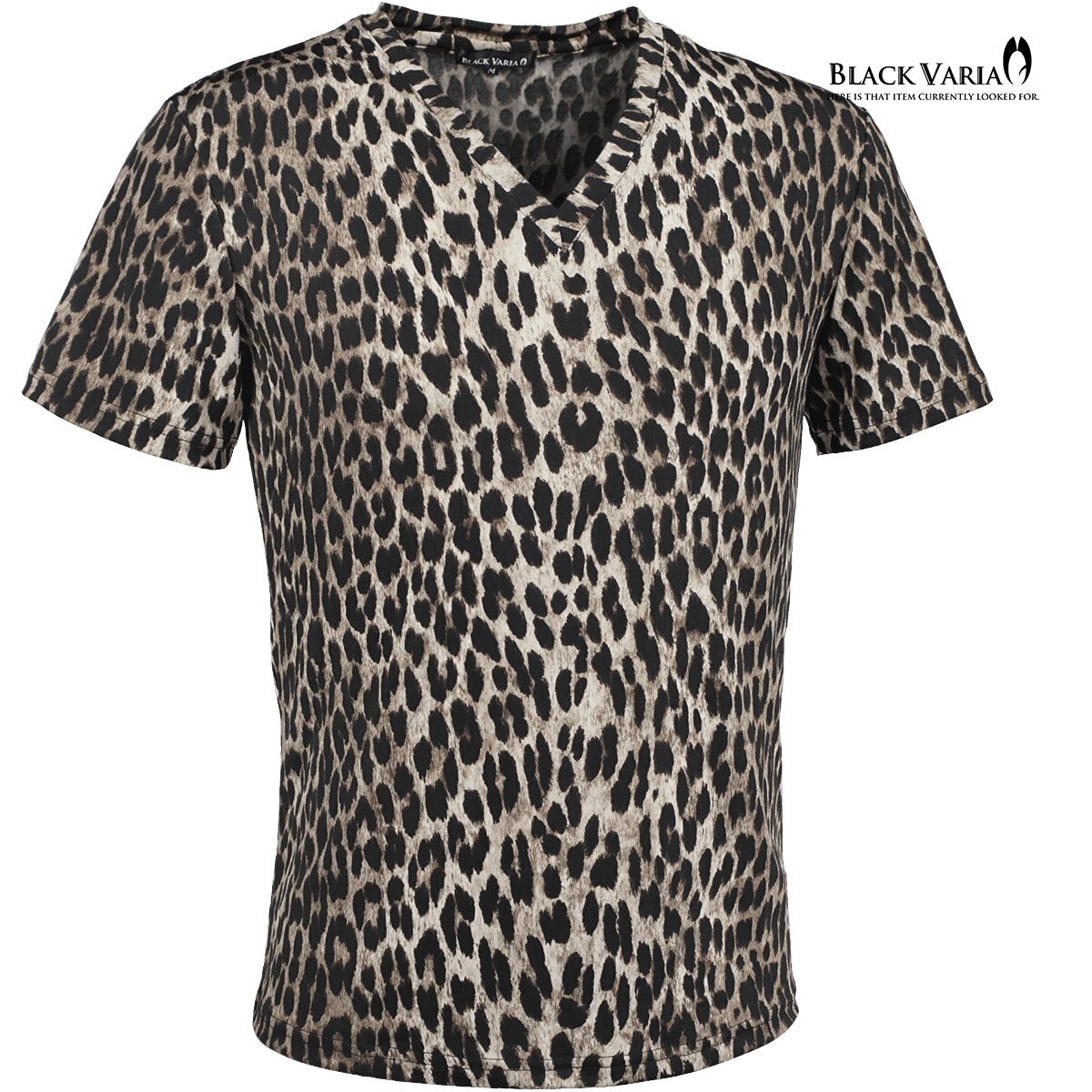 > 241306-dbr BLACK VARIA Tシャツ 半袖 Vネック ヒョウ柄 豹 レオパード 派手 スリム ストレッチ mens メンズ(ダークブラウン茶) XL