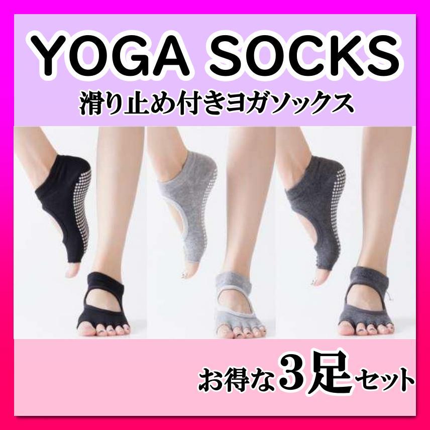 - ヨガソックス ヨガ 靴下5本指 靴下 指なし 滑り止め付 ヨガ 3足セット 黒