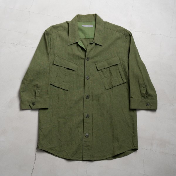 > 日本製 定価12000円ほど シップス トロピカル リネン オーバーサイズ サファリシャツ ブラウン グリーン M ミリタリー メンズ