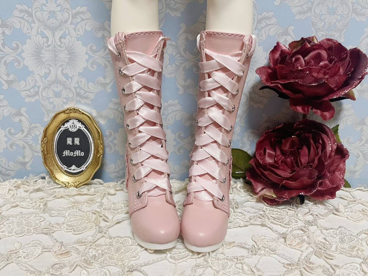 - 魔魔★DD/SDヒール足共通 レース編み上げブーツ ピンク★新品