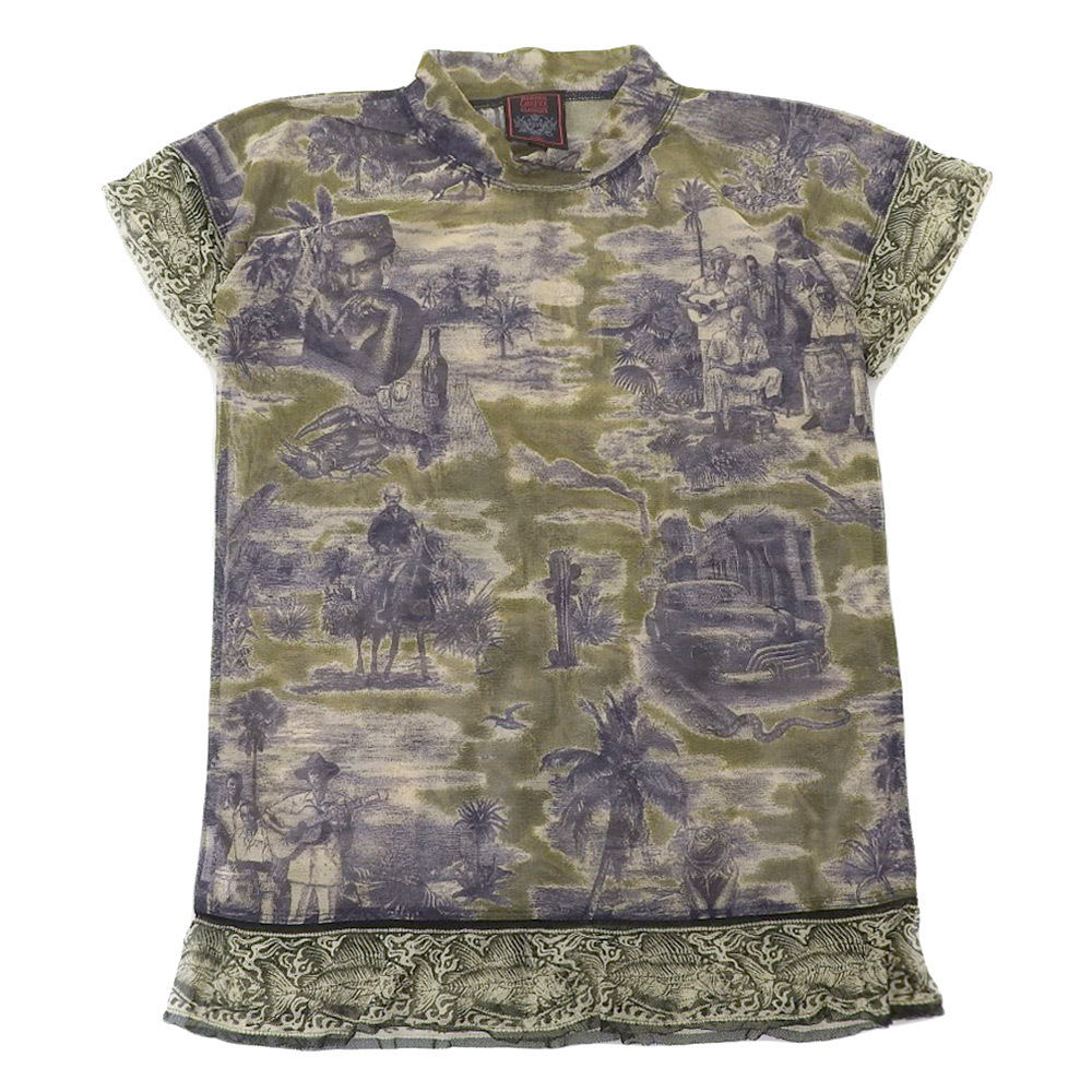 > JEAN PAUL GAULTIER CLASSIQUE ゴルチエ モックネック 総柄プリント パワーネットカットソー トップス メンズ グリーン系 48 アーカイブ