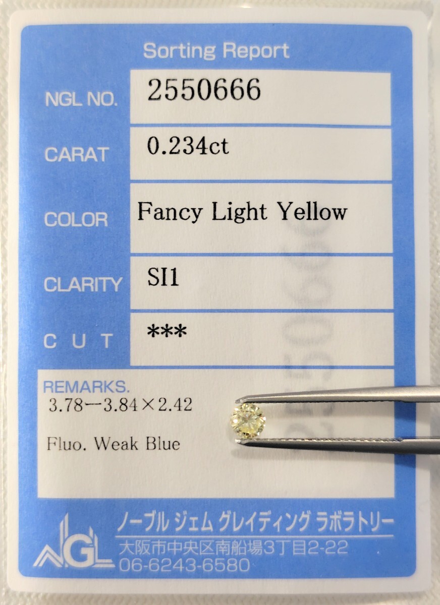 - 【12/11(木)】天然イエローダイヤモンド ルース 0.234ct FLY SI1 鑑別 NGL│ lbv 【Yellow】 ダイヤ diamond