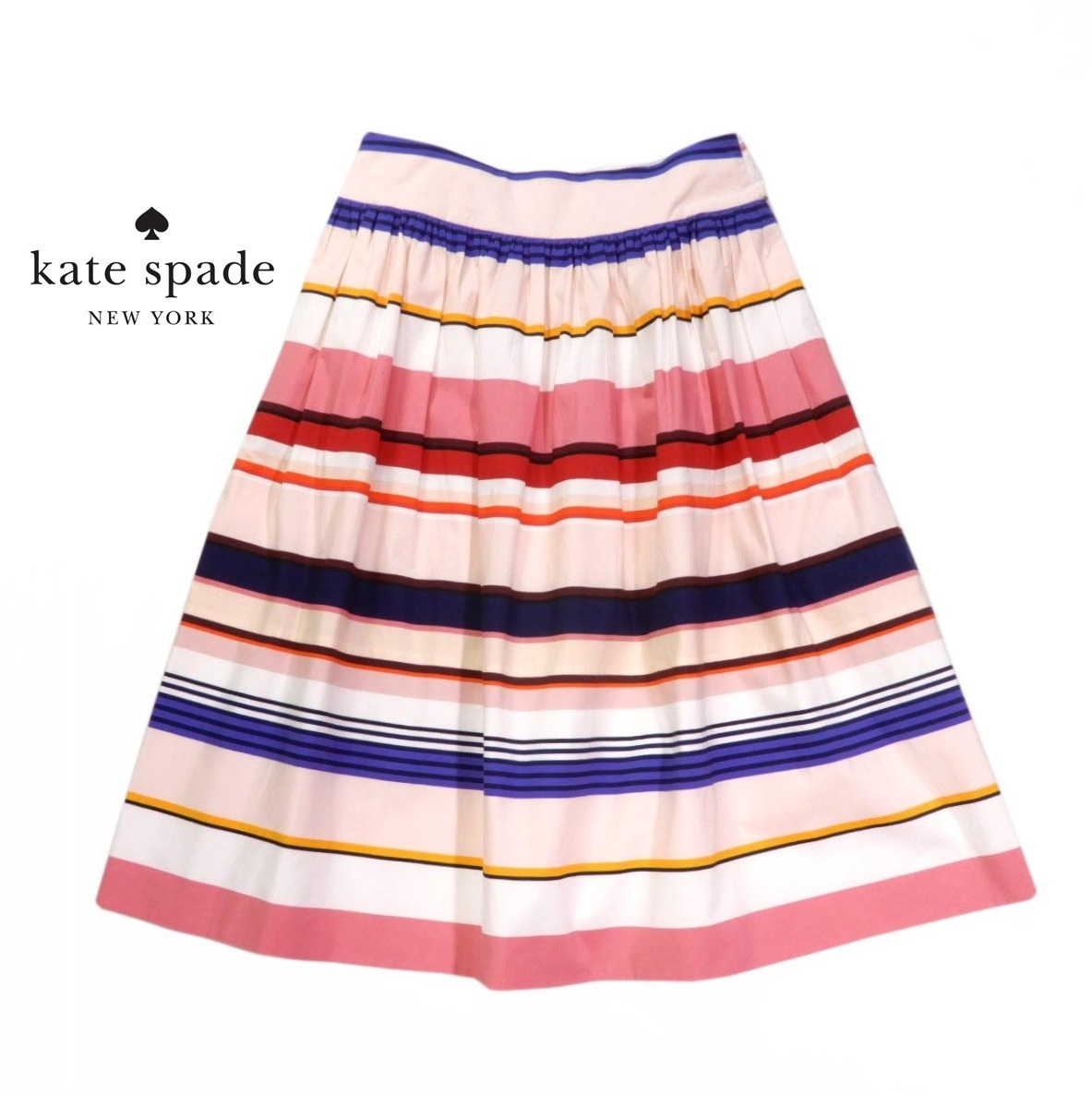 - ケイトスペード KATE SPADE スカート マルチカラー ウエストリボン フレアスカート 2-A