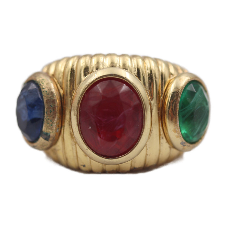 - クリスチャンディオール 指輪 リング メタル カラーストーン ゴールド 赤 青 緑 ヴィンテージ オールドディオール【本物保証】