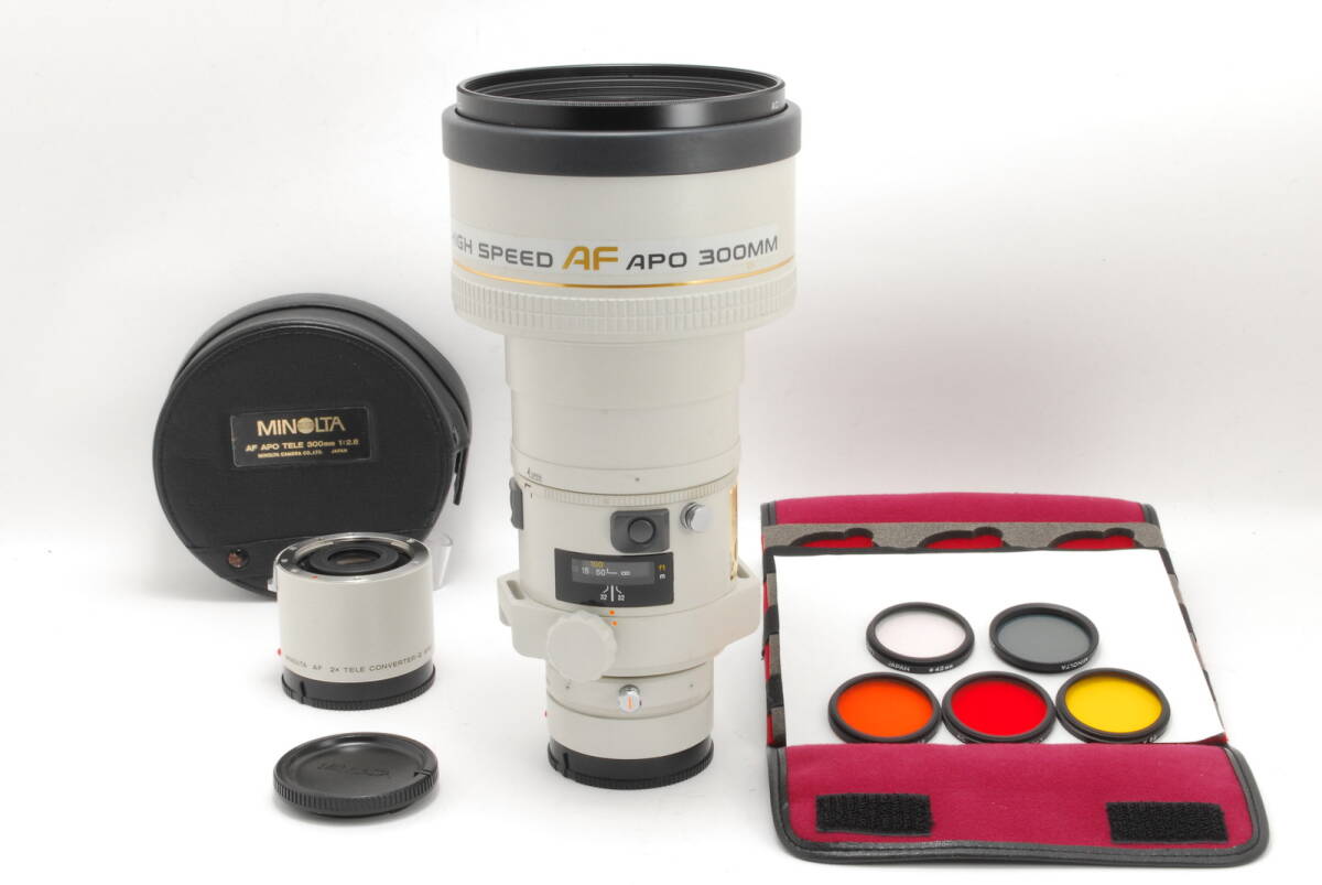 - 【美品 保障付 動作確認済】Minolta ミノルタ AF 300mm f/2.8 HS APO Lens + APO 2x II Teleconverter + Filter x5 Set #V266