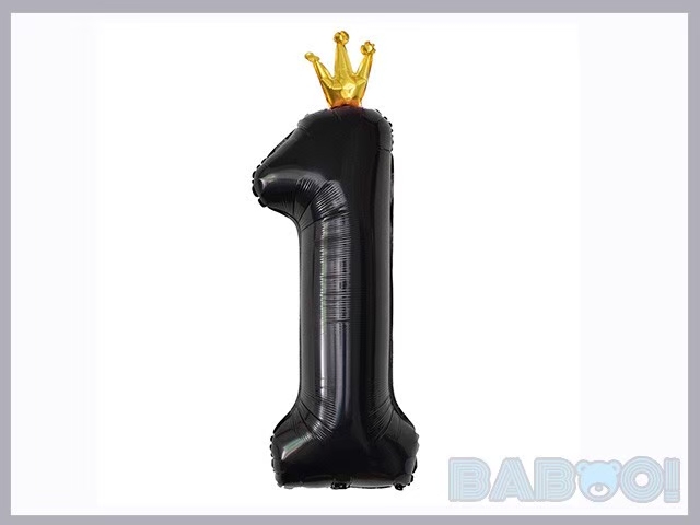 - 新品 バースデー 王冠 バルーン 風船 数字「1」 誕生日 ブラック 黒色 記念日 100cm 40インチ ウェディング、新年会、忘年会の会場、推し活