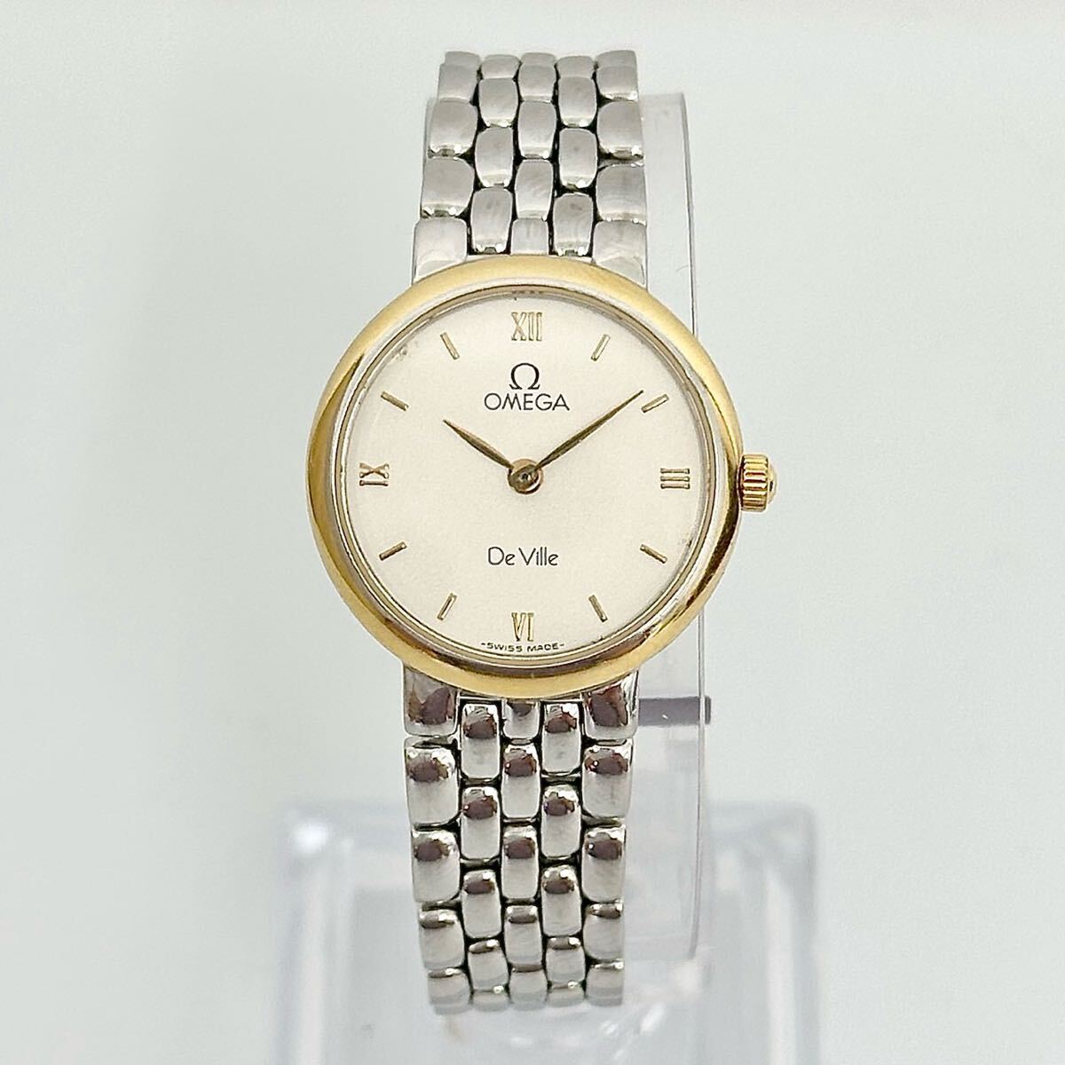 > 【W0630】 OMEGA De Ville オメガ デビル 腕時計 クオーツ SS ゴールド×シルバーカラー 白文字盤 レディース 不動 動作未確認