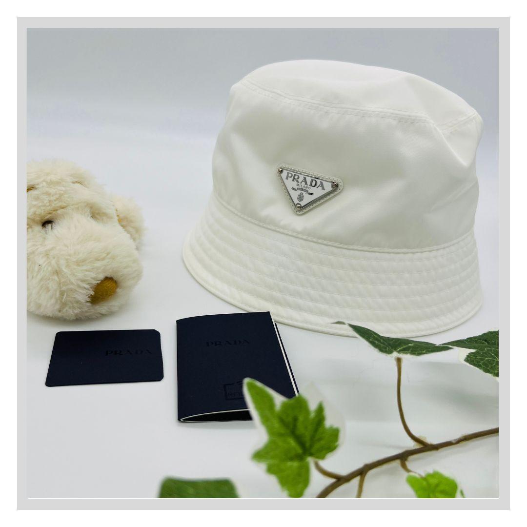 - プラダ 1HC137 トライアングルロゴ バケットハット ホワイト系 ポリ