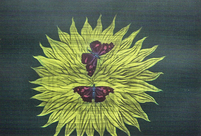 - ■☆加山又造 【ひまわり】 メゾチント 直筆サイン エディション有り 古径額シール