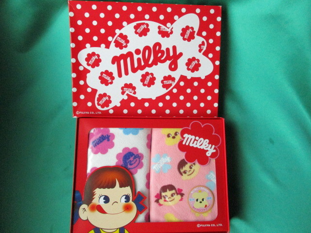 - 不二家 ペコちゃん ミルキー ハンドタオル 2枚セット BANDAI バンダイ 未使用品