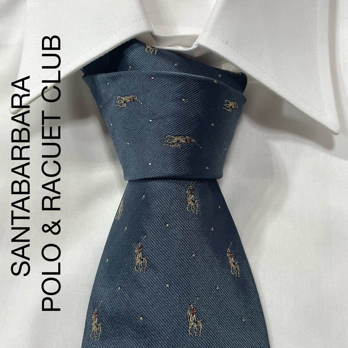 - SANTABARBARA サンタバーバラ ロゴ ドット 刺繍 ヴィンテージ ネクタイ 国産品 ブルーグリーン TG2566
