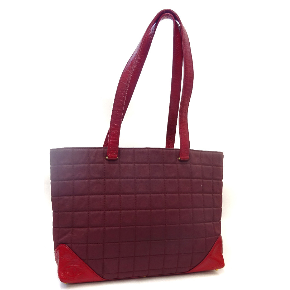 - シャネル チョコバー ココマーク トートバッグ レディース キャンバス レザー レッド ボルドー 中古 送料無料 CHANEL