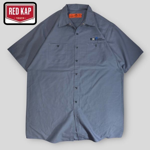 - ★美品★Southern Refrigerationロゴ刺繍★RED KAP 半袖ワークシャツ sizeXL ロング丈 上部スナップボタン 古着 洗濯 プレス済み 2297