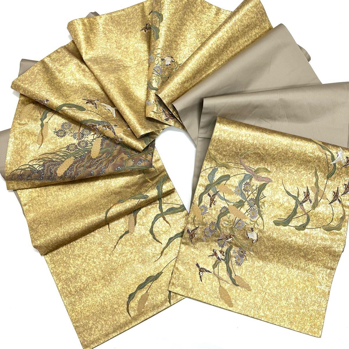 - 【七福】c621 逸品 高級品 正絹 袋帯 太鼓柄 すずめ 雀文 金糸 銀糸 刺繍 豪華