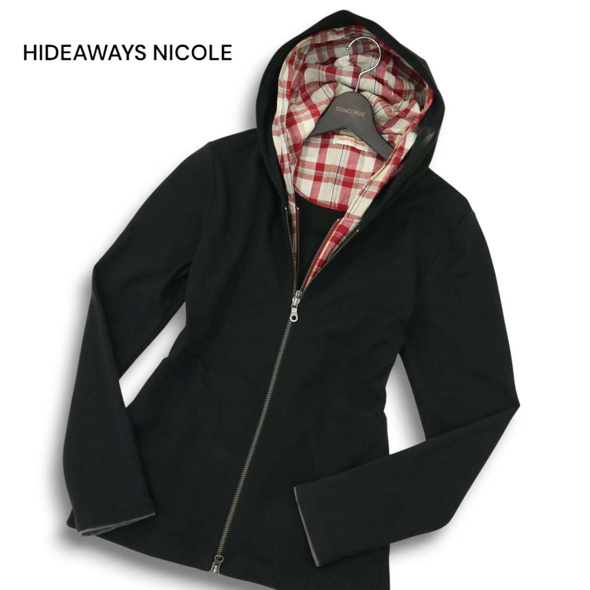 - HIDEAWAYS NICOLE ハイダウェイ ニコル 通年 チェック レイヤード風★ パーカー ジップアップ Sz.48 メンズ 黒