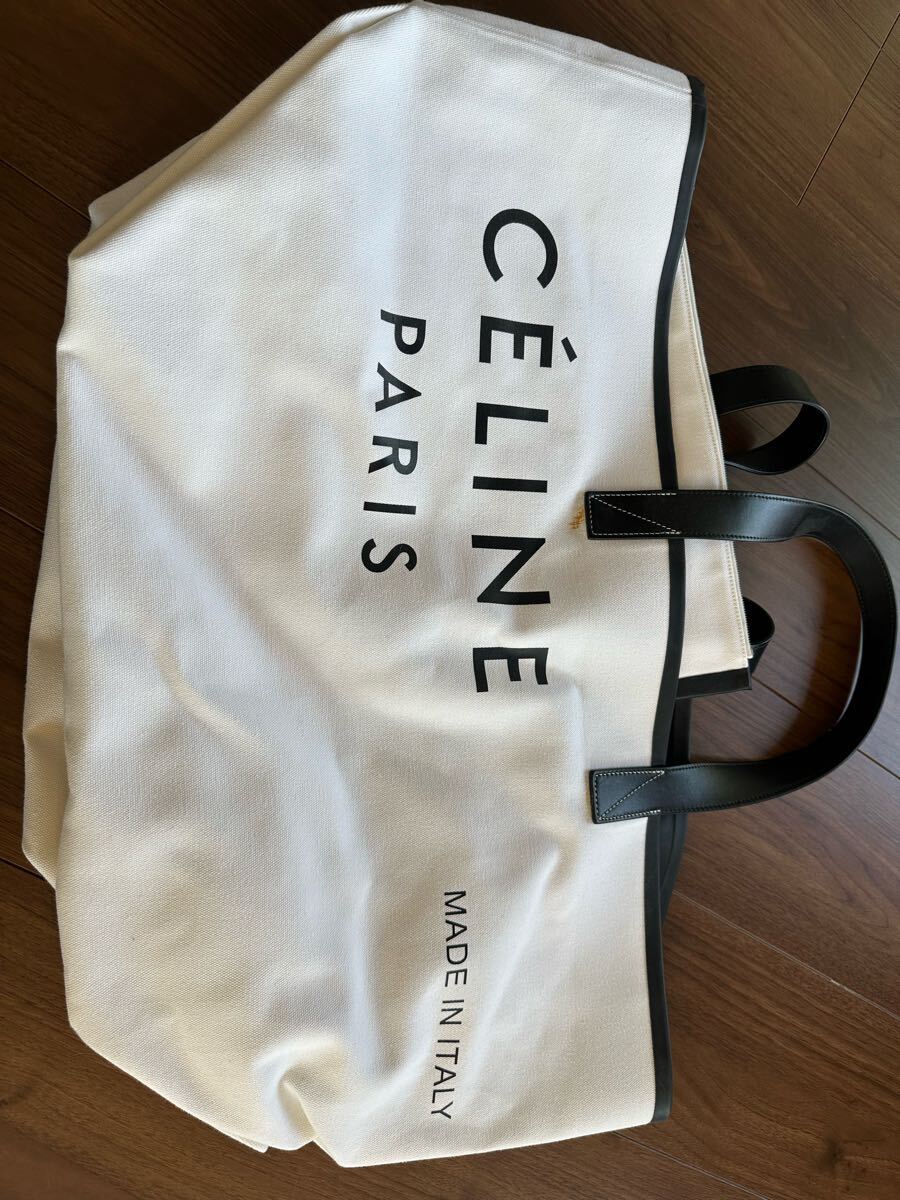 > #276 CELINE big トートバッグ 中古品 CELINE セリーヌ メイドイントート バッグ キャンバス/カーフ ホワイト/ブラック ロゴ
