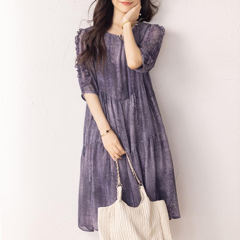 - 大きいサイズ パープル ワンピース チュニック レディース 春夏 半袖 新品