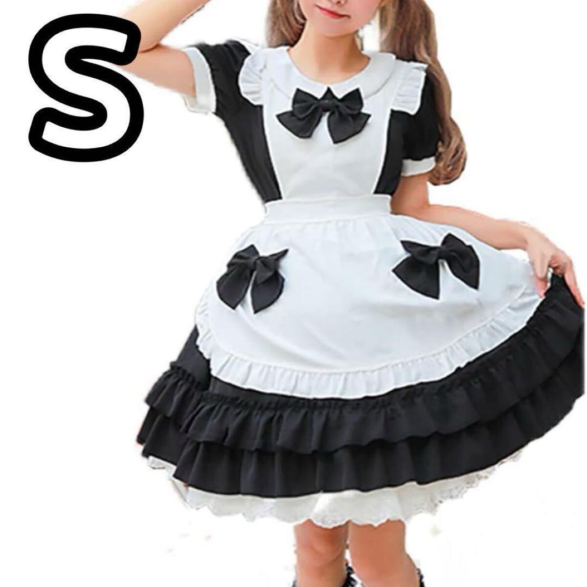 - メイド服 コスプレ 可愛い リボン S カチューシャ付き ウェイトレス 喫茶店