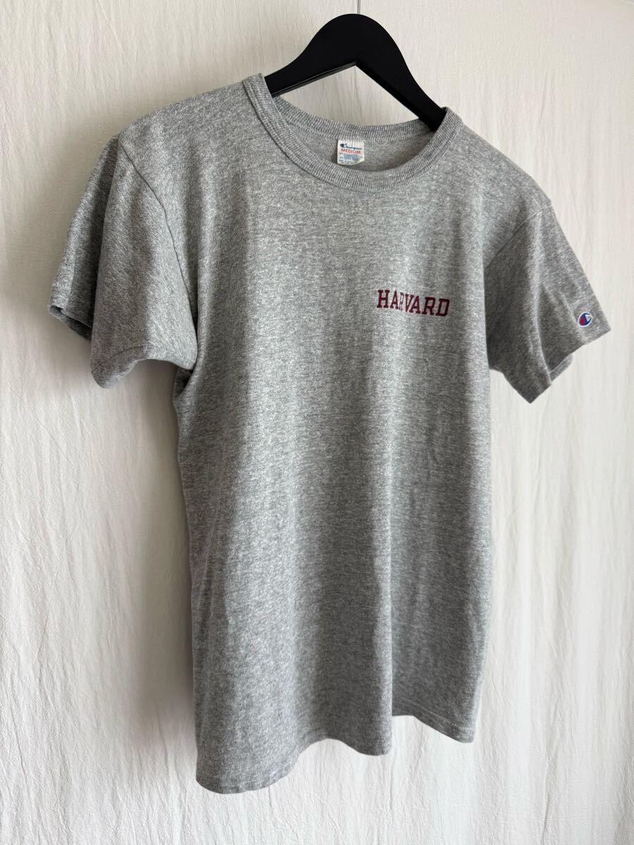 > 1980s Champion HARVARD 染み込みプリント 88/12 T-shirt USA製 表記M 杢グレー ハーバード大学 チャンピオン トリコタグ ヴィンテージ