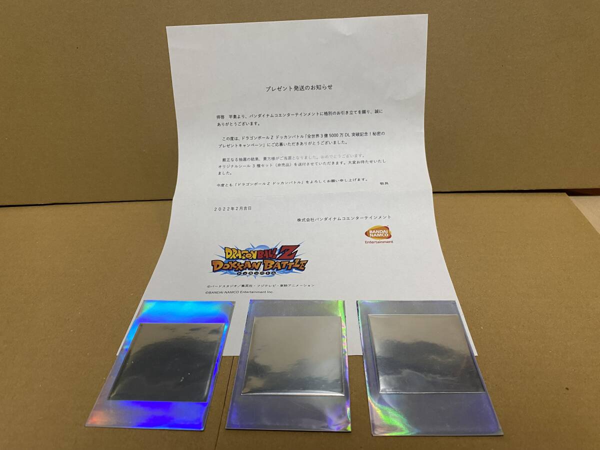 > 非売品【限定200枚】ドラゴンボール Z 『未開封』ドッカンバトル 3枚コンプ当選通知セット ウエハースシール 極美品 抽選 抽プレ 懸賞版
