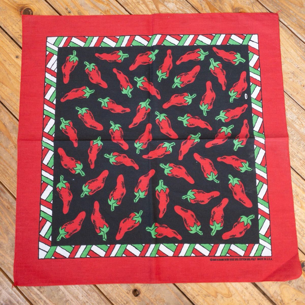 - 送料無料 Vintage バンダナ ホットチリ ハンカチ アメリカ仕入れ HOT CHILI 唐辛子 レッド 総柄 おしゃれ コーデ 雑貨 ヴィンテージ A1686