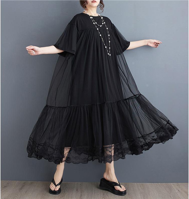 - 【即日発送】大きいサイズ レディース ワンピース シアー 春夏 秋 新品 半袖 ブラック