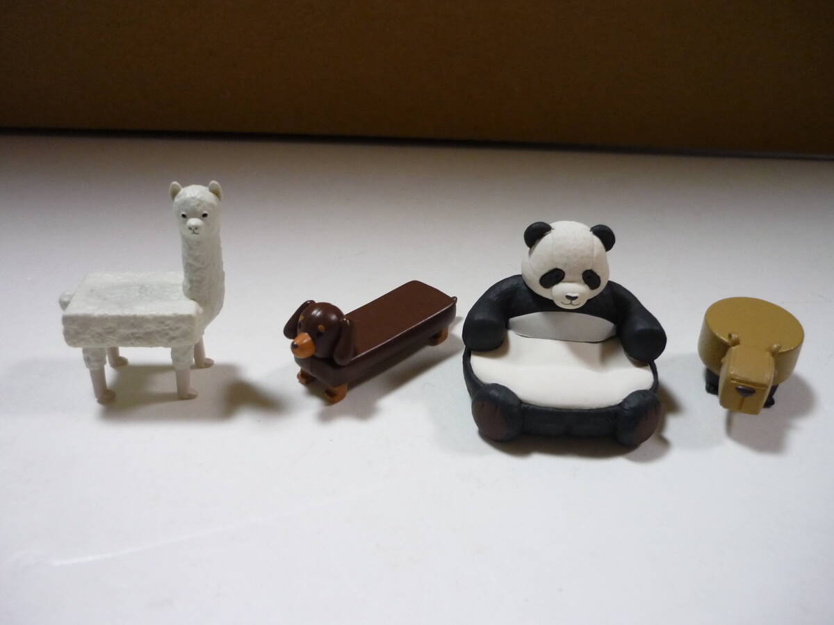- [管00]【送料無料】フィギュア 全4種セット 「インテリアニマル ~チェアー編~」ダックスフンド アルパカ パンダ カピパラス ミニチュア