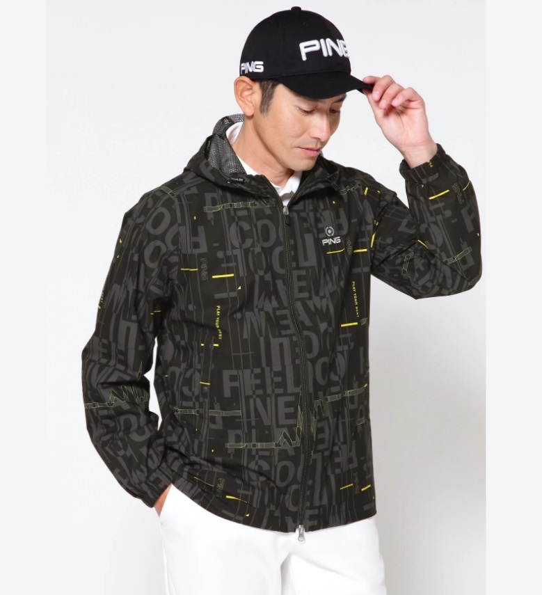 - 即決新品 PING GOLF デジタルノイズプリントリップ 撥水総裏メッシュ フーディージャケット ブラック Mサイズ Lサイズ相当ピンゴルフ