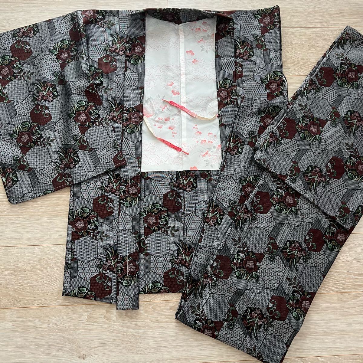 - 大島紬 着物 羽織り付き 和装アンサンブル 新品未着用 仕付け糸付き リメイクも