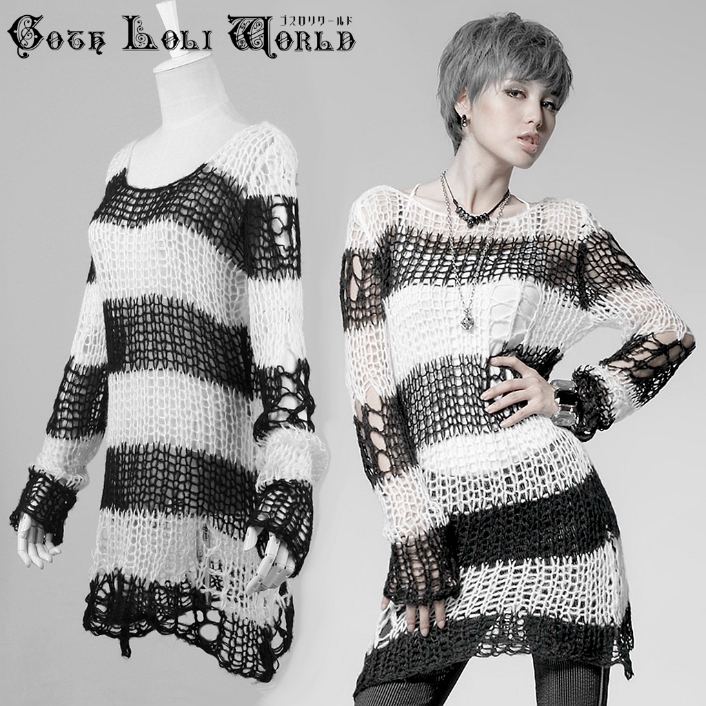> 即納 PM-004BW ダメージ 穴あき ニット ホワイト 白色 ファッション ゴシック ゴスロリ パンク ロック ロリィタ ビジュアル系 V系