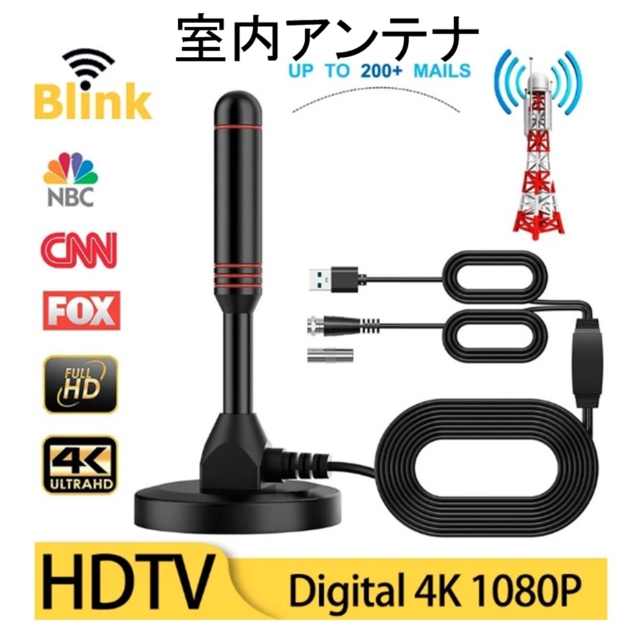 - ブースター内蔵 室内アンテナ テレビアンテナ 地デジアンテナ(ブースター付き カー TV ロッド ワンセグ フルセグ UHF VHF 車載 アンテナ(1)