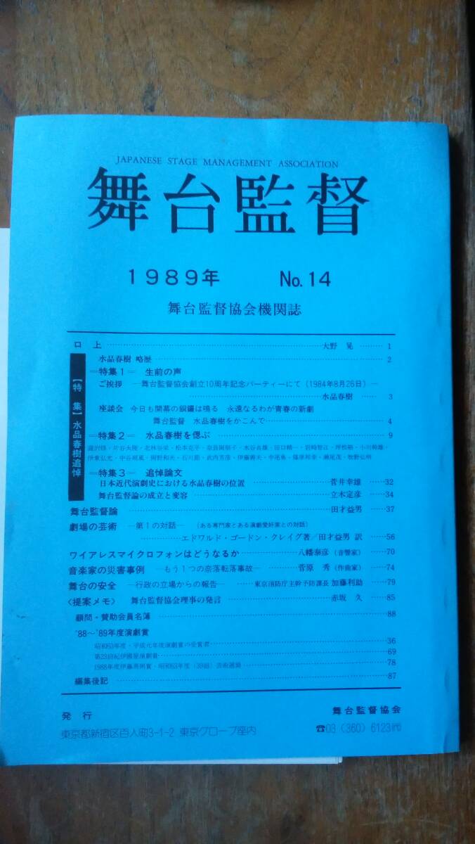 - 舞台監督協会機関誌『舞台監督 14号 水品春樹追悼』1989年 良好です Ⅰ演劇