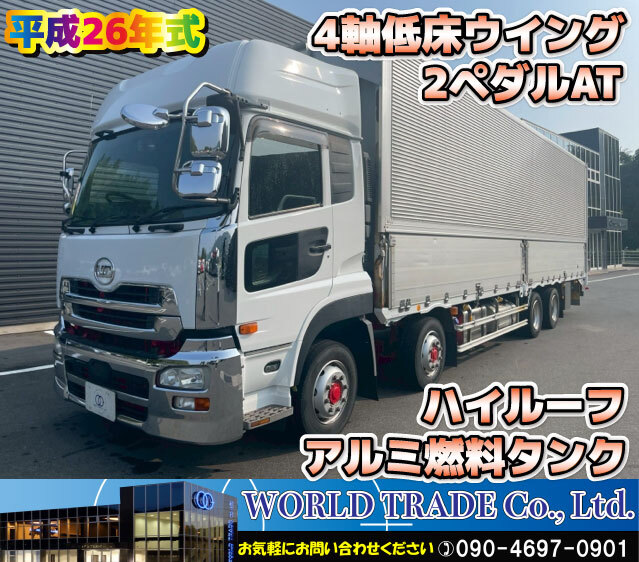 - 【広島発】下取り・ローン受付可! UDトラックス クオン 4軸低床ウイング 平成26年式 2ペダルAT ハイルーフ アルミ燃料タンク