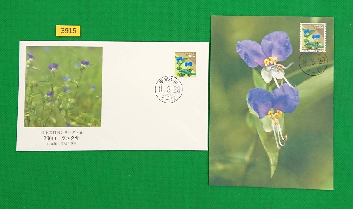 > FDC/ポストカード/普通切手/日本の自然/ツユクサ/初日印/東京中央和文ハト印他/日本郵趣協会/解説書無し/1996年3月28日/初日カバー/№3915