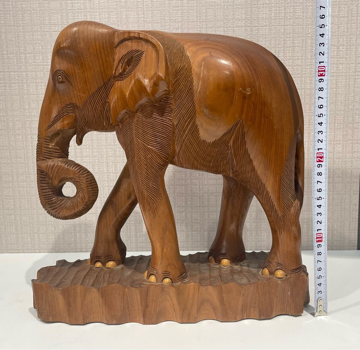 - ゾウ 木製 置物 木彫り 象 彫刻 オブジェ インテリア エスニック 重量約6.2kg