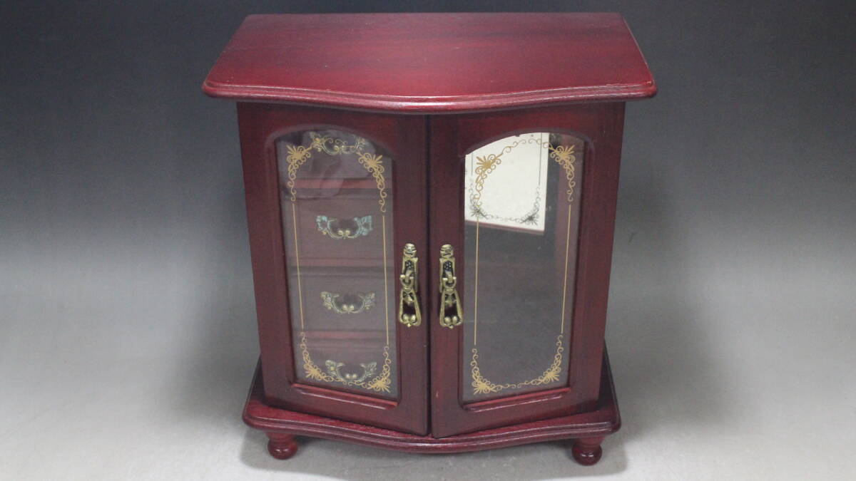 - 【文明館】オルゴール付 ジュエリーボックス アクセサリー 小箪笥 宝石箱 抽斗棚 小物入れ ※ジャンク扱い ソ25
